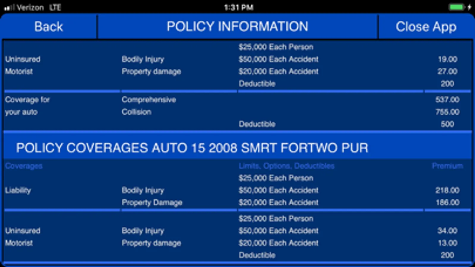 • View policy coverages, discounts and drivers