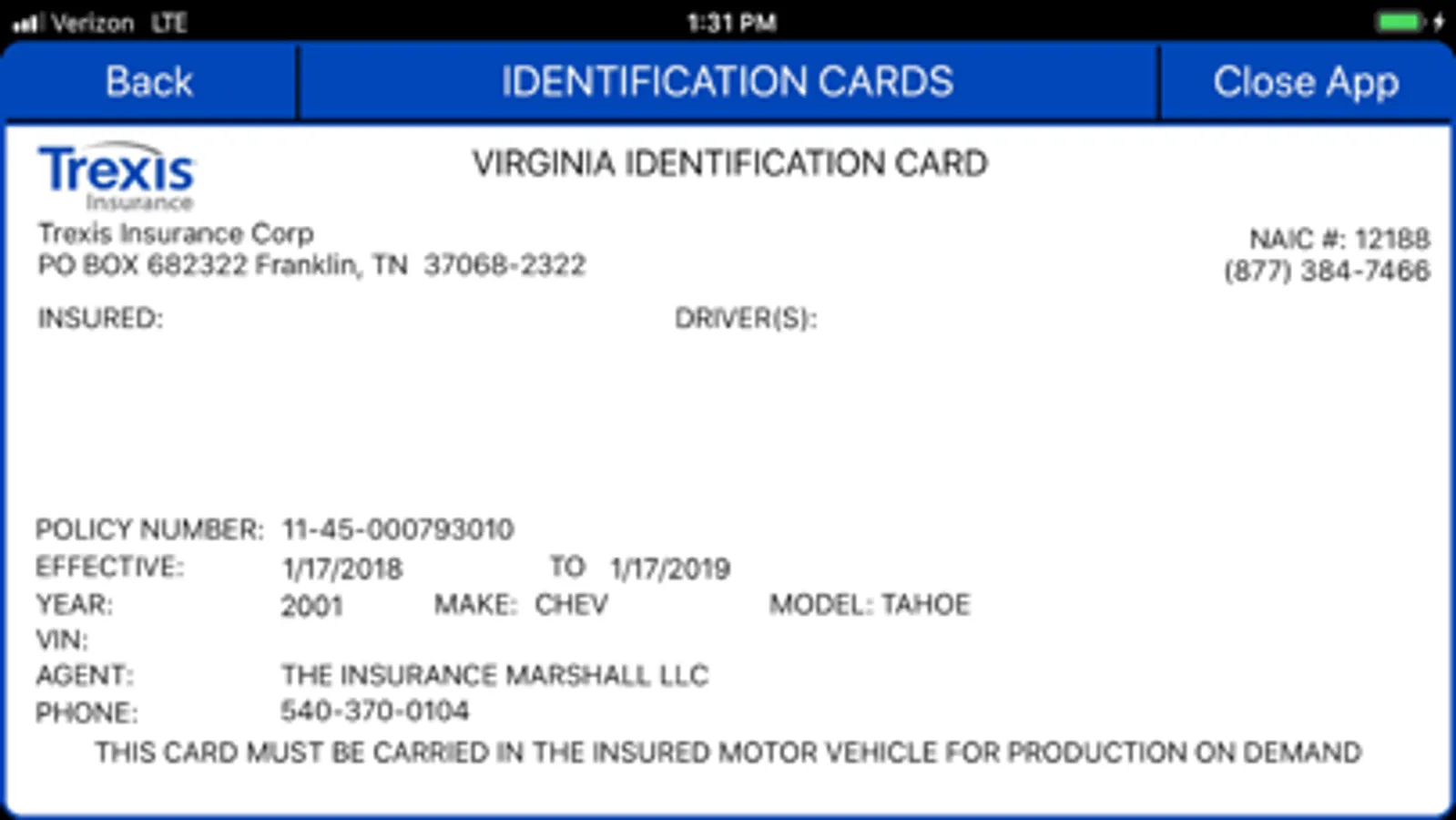 Trexis Insurance App features: