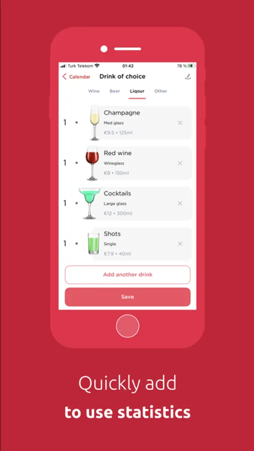 - Add your personal types of drinks;