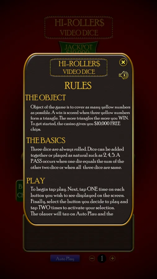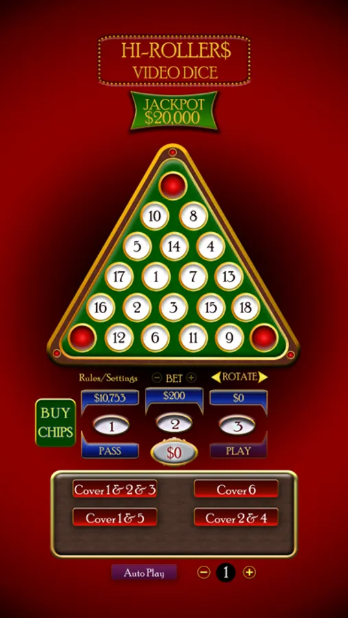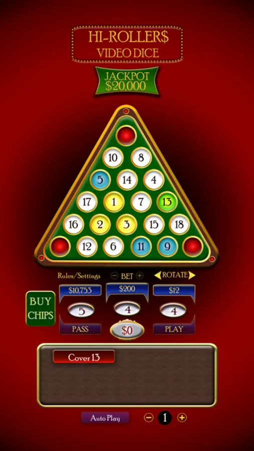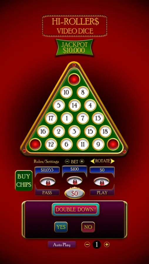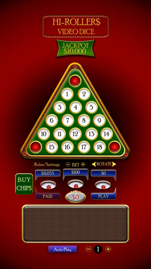 dice game with a dynamic AUTO PLAY feature. The casino starts you out with $10,000 FREE chips.