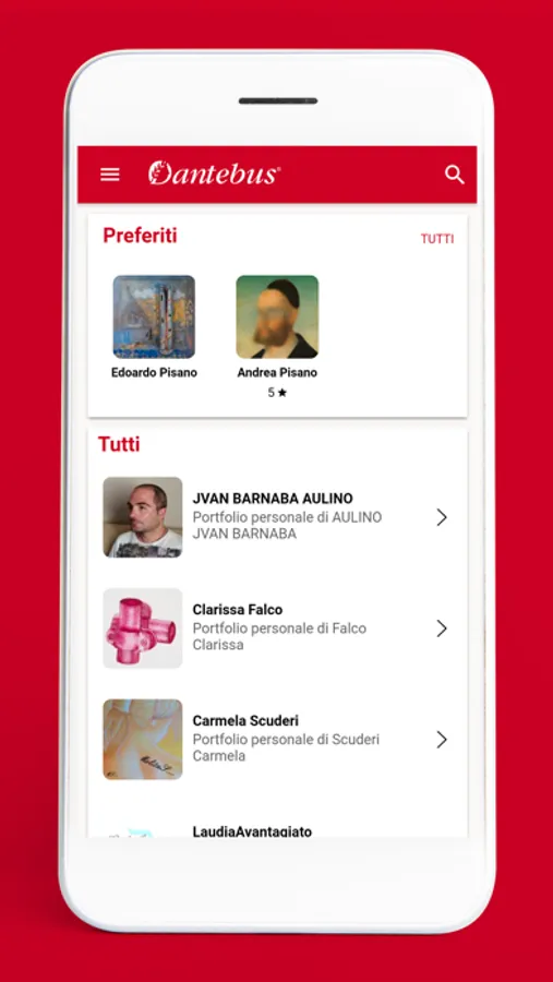 - Profili/portfolio degli artisti selezionati da Dantebus.