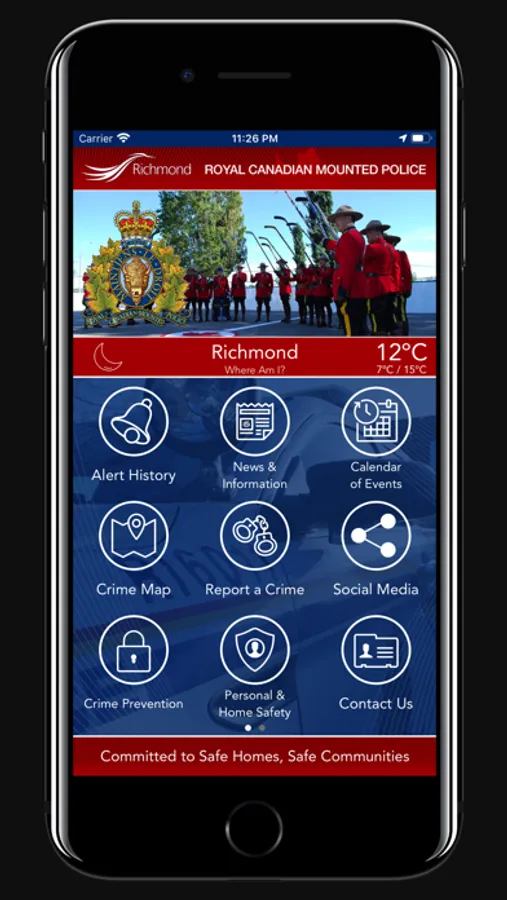 The Community Safety App provides Richmond residents and businesses the ability to report a crime, commend an officer or file a complaint – all from the palm of their hand. Additional features include access to news releases, emergency alerts/broadcasts, an events calendar, criminal activity map, crime prevention information, and details on the many programs/services offered by Richmond RCMP.