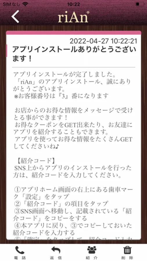 リアンのアプリをSNSを通じてお友達に紹介する事ができます。