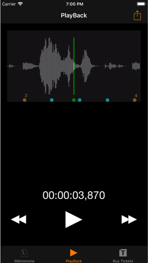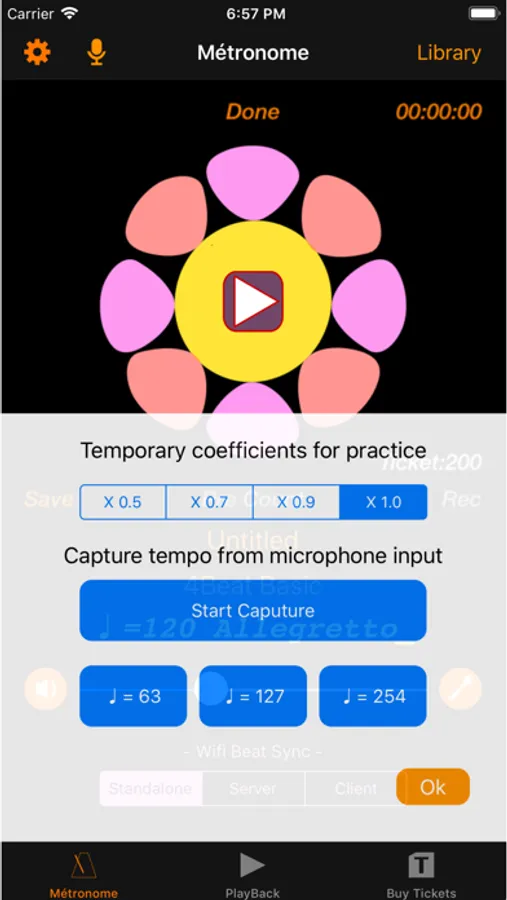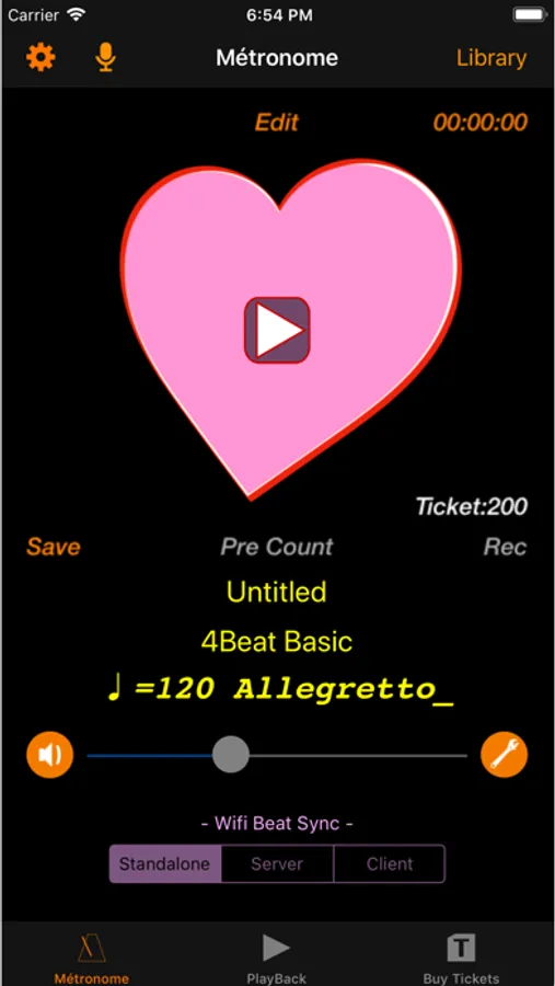 - If you record your performance, it will be played at the same time as the click sound (two types of sine waves), and you can clearly determine whether the rhythm matches with the beat marker display.