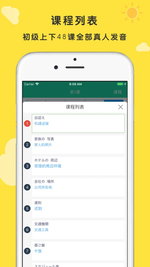 大家的日本语, 包括了最新版教材 48课有声教程,包含单词,句型,会话,语法,全部高清真人发音.