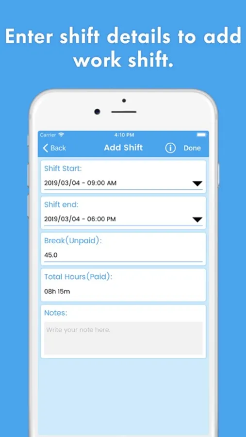 WorkLog - Shift Hours Tracking helps to add your shift or punch in and punch out your shift. You can view your shift details by pay period, week, month, year and all. It also calculate your wages, expenses, overtime, deduction, bonus, sales, tips and many others as per app setting and user needs.
