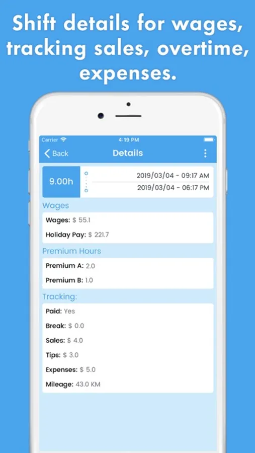 • Flexible setting for wages, tracking sales, tips, expenses.