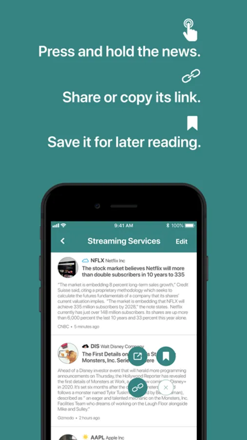 • Easy to share: Press and hold a story you want to share. Tap the share icon or copy its link.