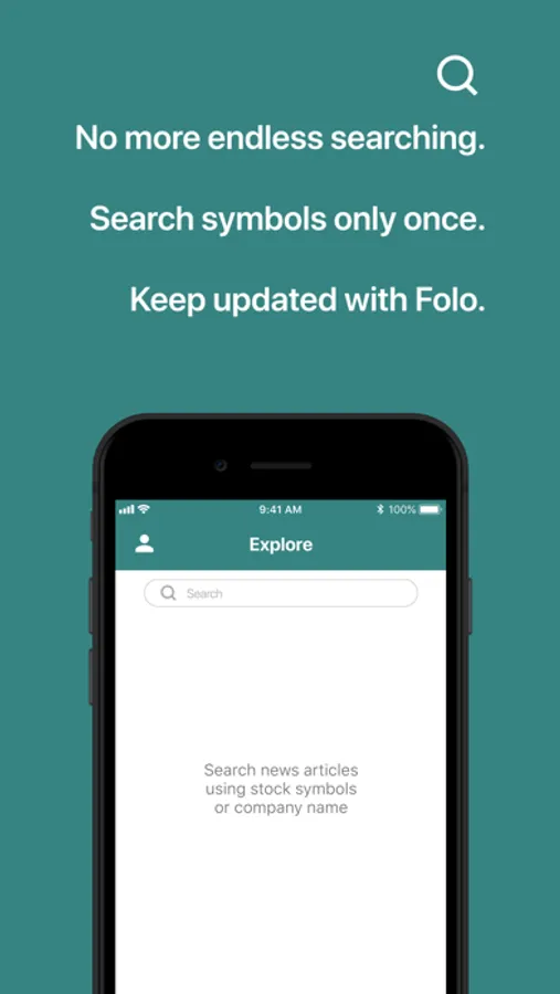 • Simply search and tap a symbol you want to keep track of. Folo will keep you updated.