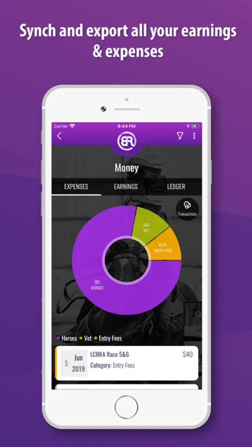We know it's a lot to have all those feed, entries, vet, fuel, and maintenance costs floating around in your head. Let us take on some of the stress of the sport by tracking and categorizing all those numbers for you.