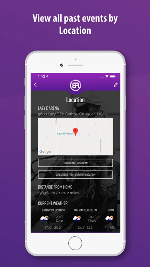 Whether you're driving 20 minutes or 20 hours to your next event, we'll let you know the weather, make your navigation easy