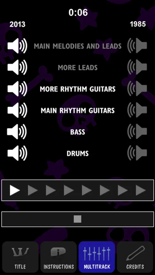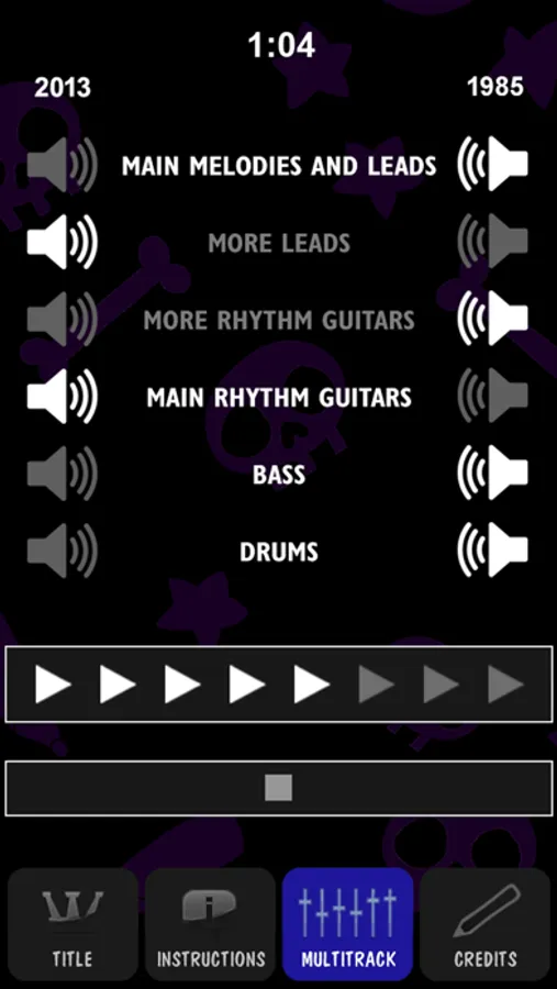 - Each track contains two "speaker" buttons which let you select which instrument you want to hear. You can hear each recorded part by itself or not at all.