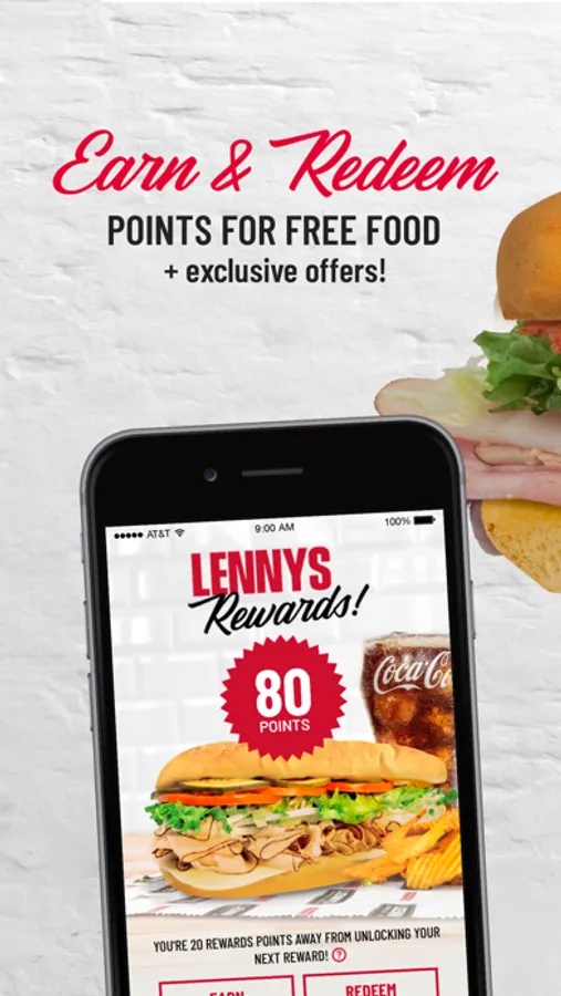 Hey Lennys Lovers! Welcome to Lennys Rewards, where getting rewarded for our purchases has its perks! Earn and redeem rewards points for FREE food, get exclusive offers, and be the first to see our new menu items! Plus, take advantage of our order ahead option to save time for pick up or delivery, and customize your favorite subs!