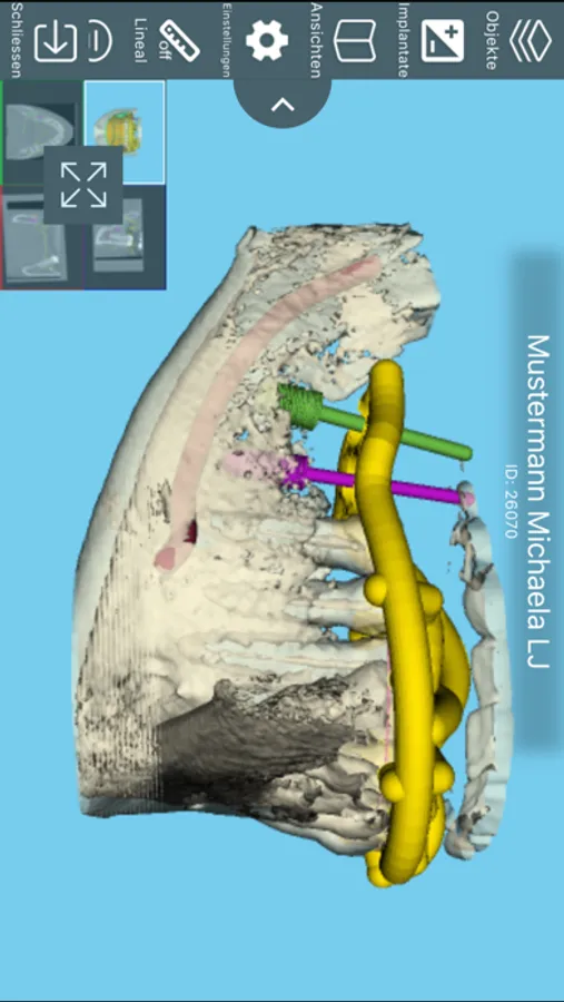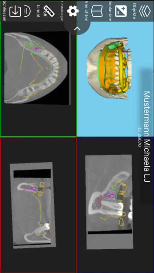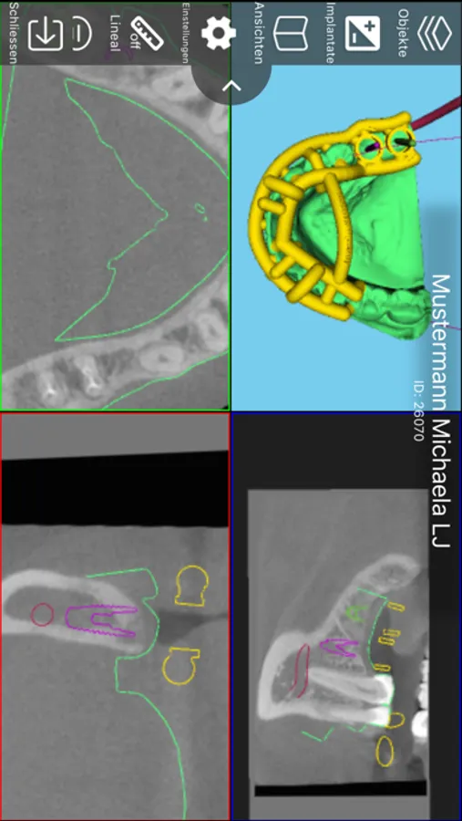In the app you can surf through all the slices in all the relevant areas and in all directions and you can comment on the implant planning and designed drilling template.