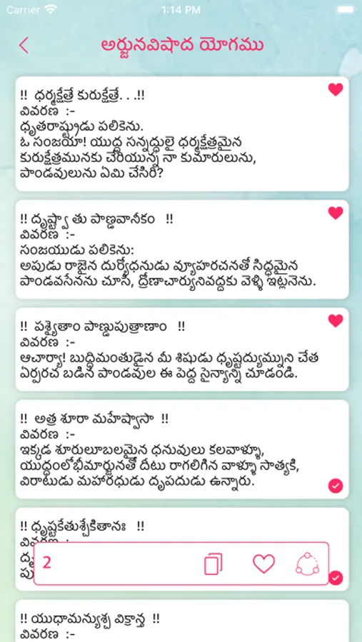 - Swipe the Bhagavad Gita description to Bookmark and Share