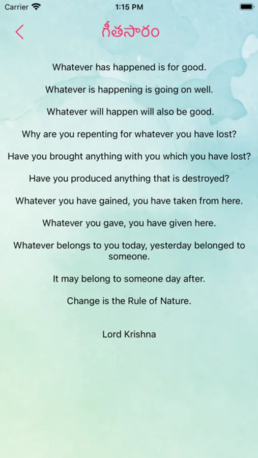 Now you can read all the beautiful revelations of god krishnar through Bhagavad Gita telugu app. In our Bhagavad Gita most important thing is that it doesn't consume your Internet. Read it peacefully and be blessed.
