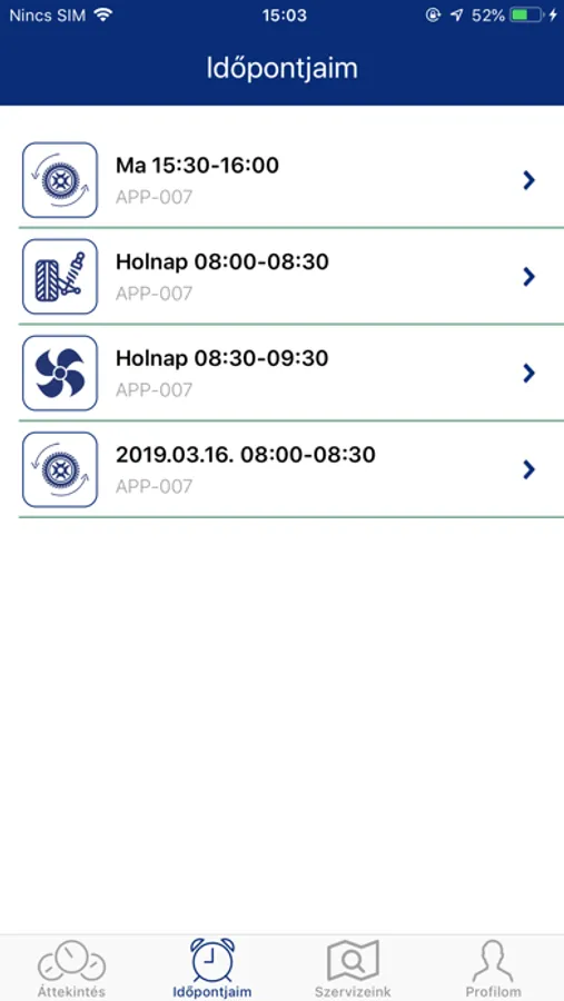 Saját fiókoddal bejelentkezve nem kell minden alkalommal újra megadnod a saját és autód adatait. Pár gombnyomással intézheted a például a szezonális gumicsere időpontodat bárhonnan, éjjel-nappal. Az alkalmazás értesítést küld a telefonodra az időpontodról, így biztosan nem fogod elfelejteni.