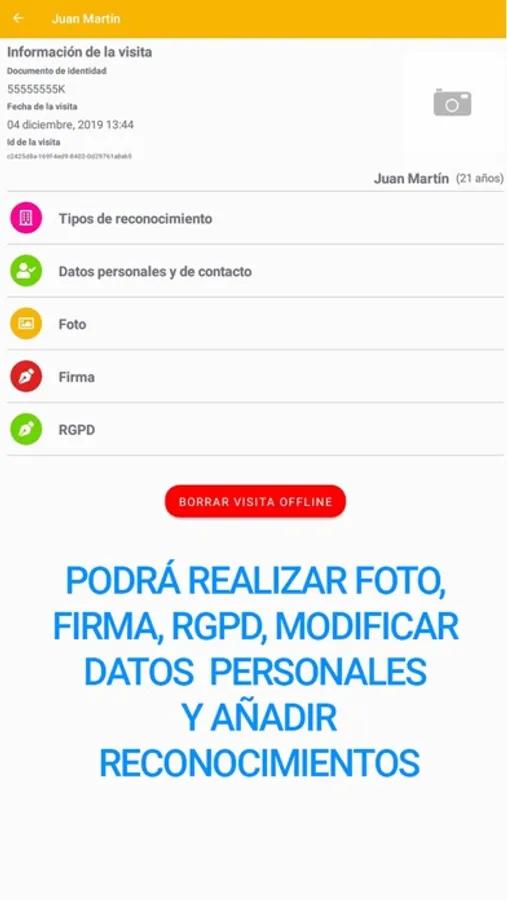 Permite gestionar la realización de fotos, firmas y firma de RGPD de sus clientes de forma sencilla a través de un dispositivo móvil así como realizar visitas offline cuando se quede sin internet, que posteriormente se sincronizarán con STORM web cuando vuelva a tener conexión.