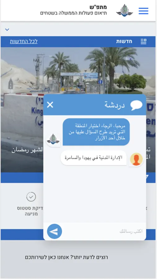 يسمح هذا التطبيق للسكان بتلقي المعلومات وتنفيذ الإجراءات التالية أمام وحدة تنسيق أعمال الحكومة في المناطق: