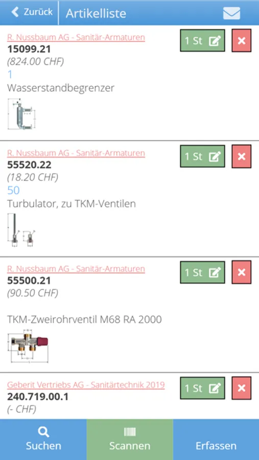 Für OF-Order stehen sämtliche Kataloge der IGH (u.a. Geberit, Nussbaum, GF, JRG, Tobler, Sanitas-Troesch, Richner, ...) zur Verfügung. Fremde Artikel, die nicht in einem IGH-Katalog vorhanden sind, können in eigenen Katalogen leicht erfasst werden.