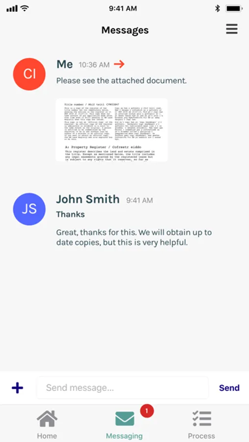 • Send messages direct to your Lawyers’ inbox with all references and property details automatically added by the app