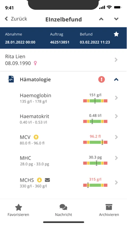 Sie erwarten einen wichtigen Befund? Unsere Benachrichtigungsfunktion informiert Sie über eilige oder kritische Parameter per Push-Nachricht.