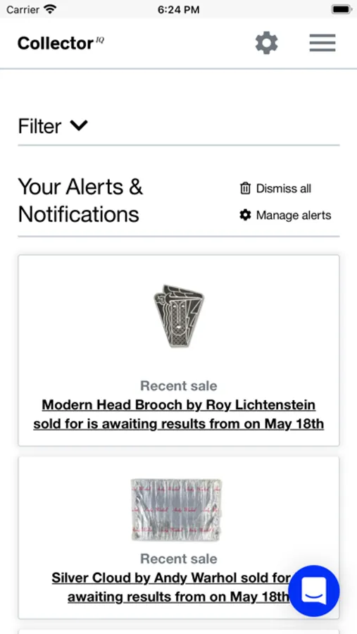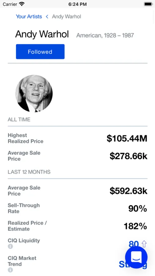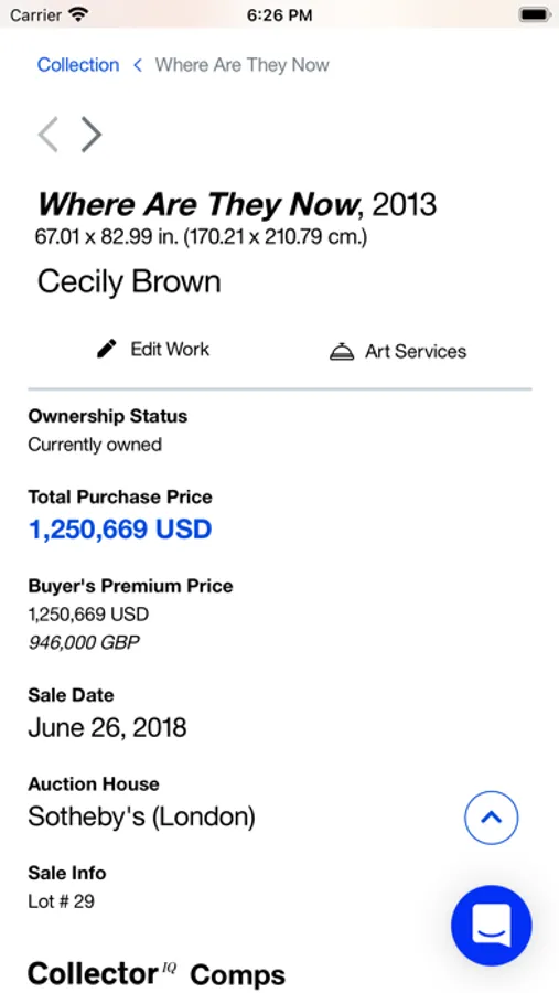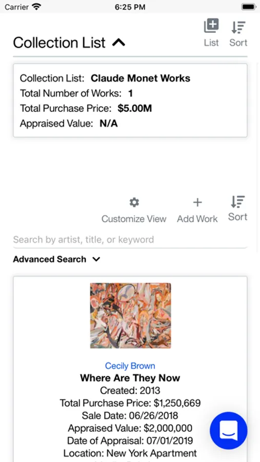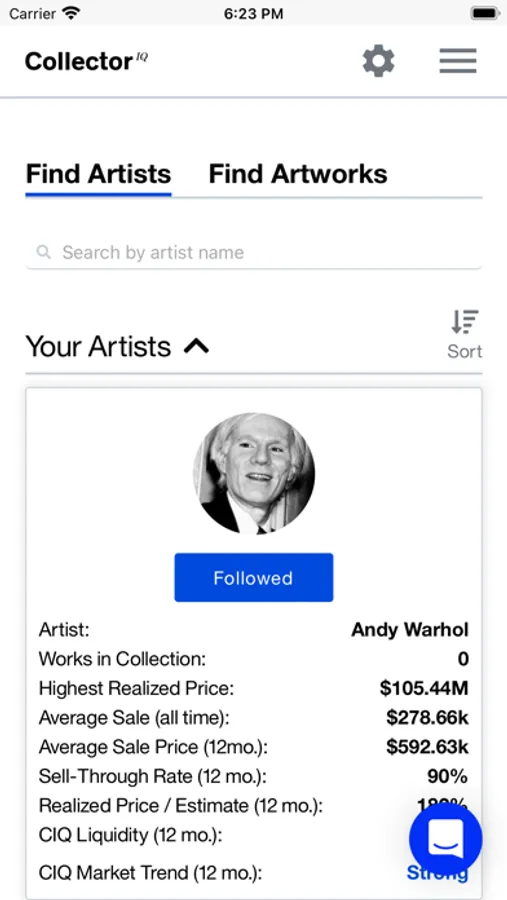 CollectorIQ's app provides access to several important account features including Collection Management and Artist Research.