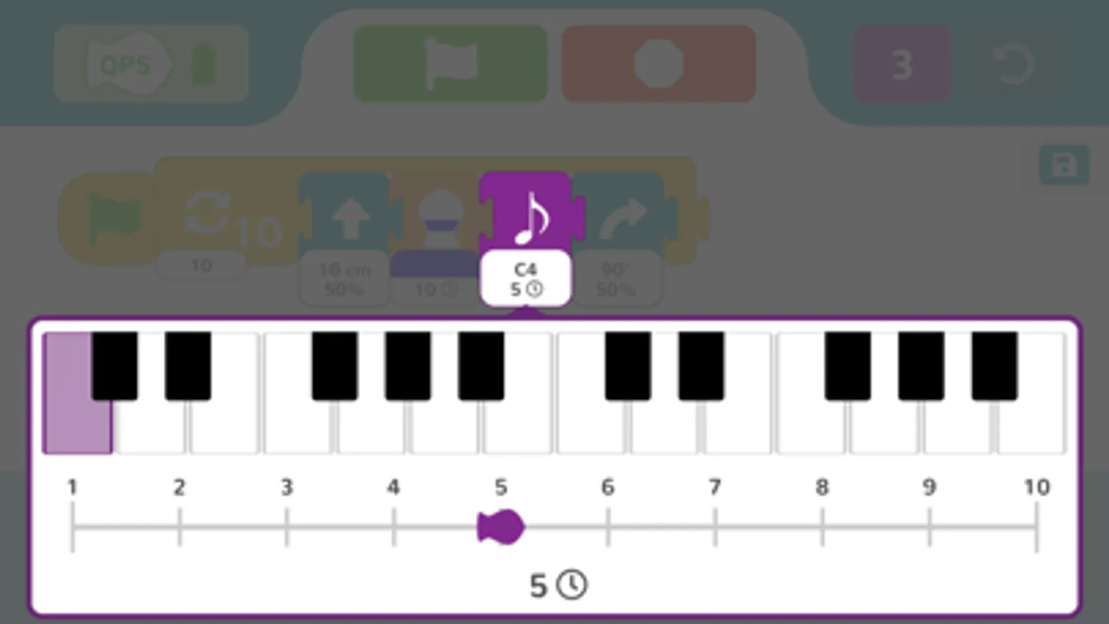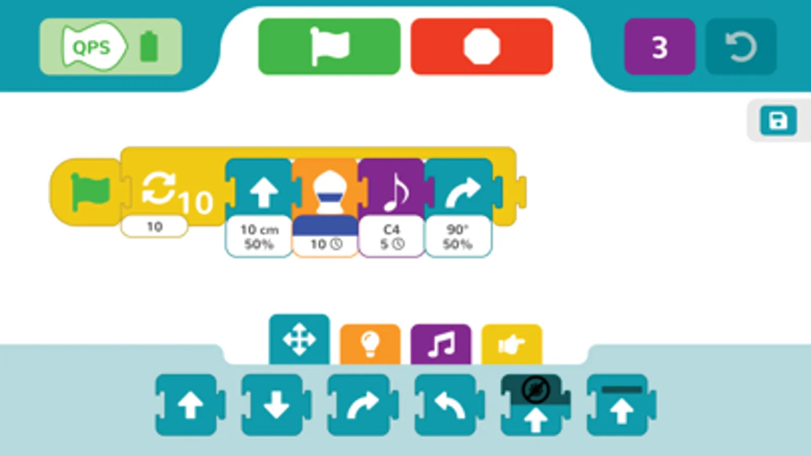 Level 3 provides additional parameters and introduces children to basic ways to control what happens in a program. For example, students can use a loop to repeat actions within a program, or they can use a movement block that drives the Finch forward until it finds an obstacle.
