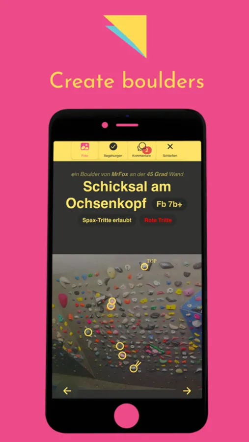 The BoulderBook app allows you to save, share and rate boulder on your training wall. Never forget a boulder definition on your spraywall again!