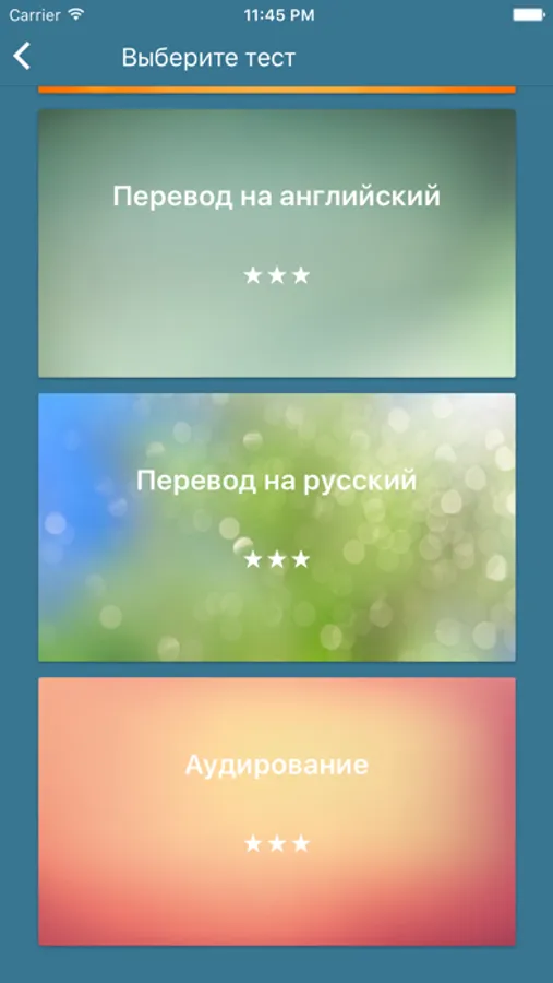 4) После изучения можно переходить к закреплению. Более пяти тестов разного уровня сложности помогут отработать навыки аудирования, правильность написания слов и перевод.