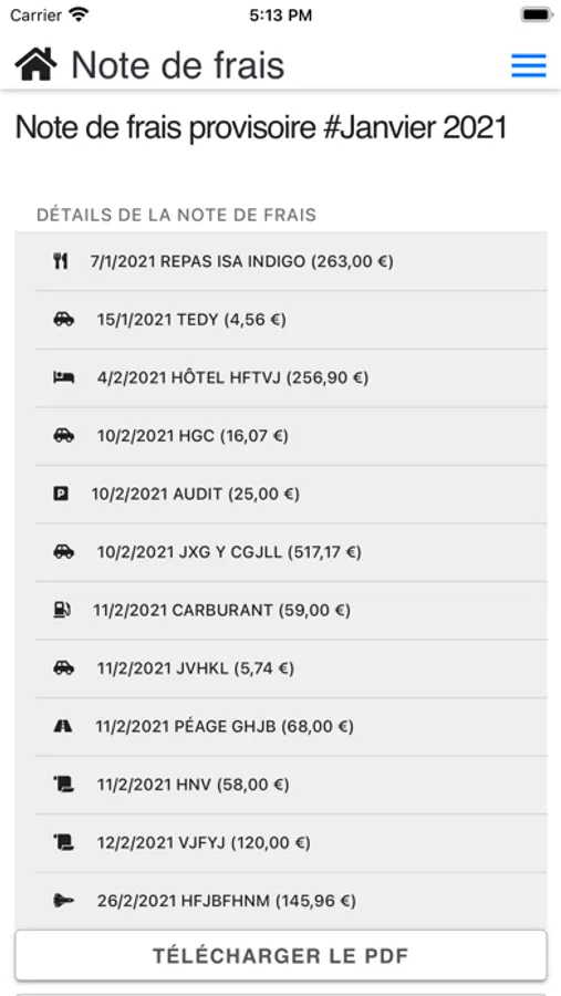 La photo est archivée, les données sauvegardées sur votre serveur et à la fin du mois vous pourrez générer votre notre de frais au format PDF.