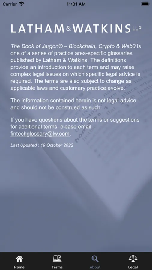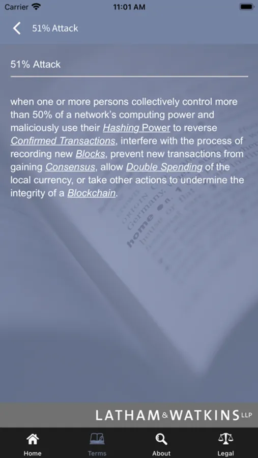 The Book of Jargon® — Blockchain, Crypto & Web3 is one in a series of practice area-specific glossaries published by Latham & Watkins. The definitions provide an introduction to each term and may raise complex legal issues on which specific legal advice is required. The terms are also subject to change as applicable laws and customary practice evolve. The information contained herein is not legal advice and should not be construed as such. If you have questions about the terms or suggestions for additional terms, please email fintechglossary@lw.com.