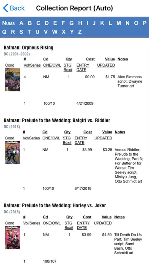 - Lookup comic information and values by scanning a comic's barcode with your phone's camera, or by typing in its title and issue number