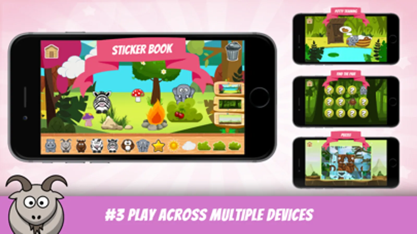 - Stickers: Lots of colorful interactive stickers that can be placed anywhere. Children can create their own story and choose different animal environments.
