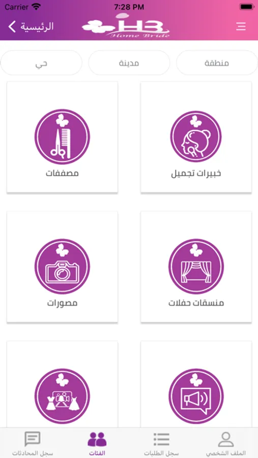 ارتيسات ، مصورات ، مصففات ، منسقات حفلات ، سويتات.