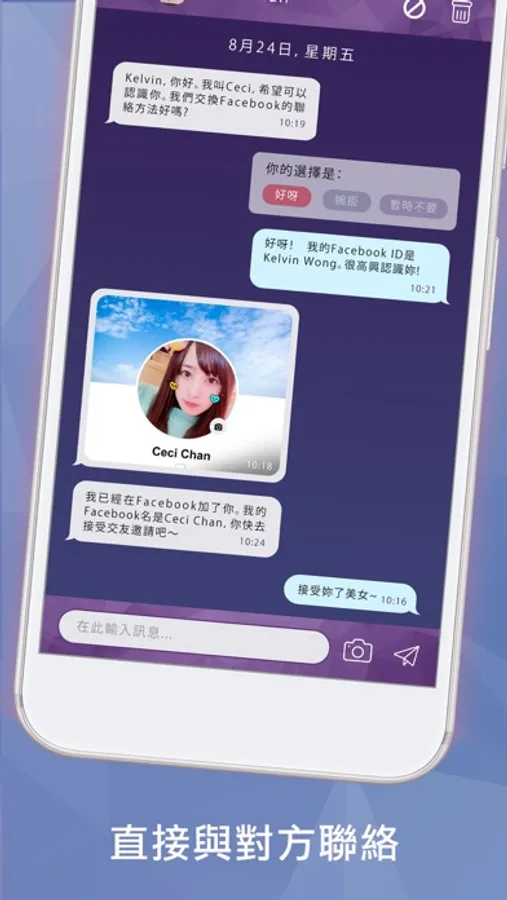 全新交友模式, 不用再在APP內等待對方回覆訊息, 直接與心儀對象交換電話, LINE, WhatsApp等聯絡資料!