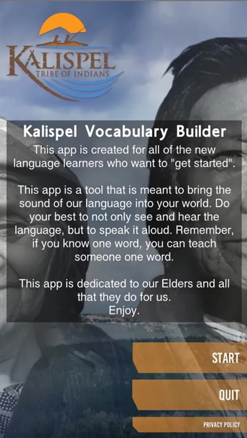 This app is a tool that is meant to bring the sound of our language into your world. Do your best to not only see and hear the language, but to speak it aloud. Remember, if you know one word, you can teach someone one word.