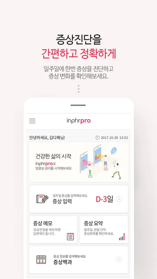 - inPHR pro는 암 환자의 증상, 부작용 관리를 위한 앱 입니다.