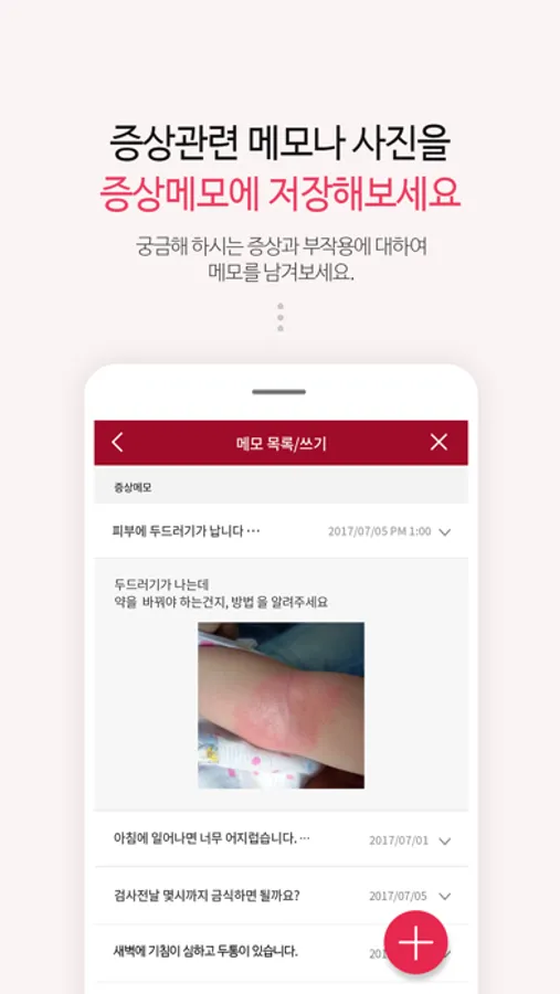 - 증상 메모 : 환자가 자신의 증상에 대한 사진이나 메모를 입력 할 수 있습니다.