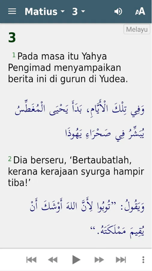 App luar talian ini menawarkan Kitab Injil dalam bahasa Malaysia dan bahasa Arab
