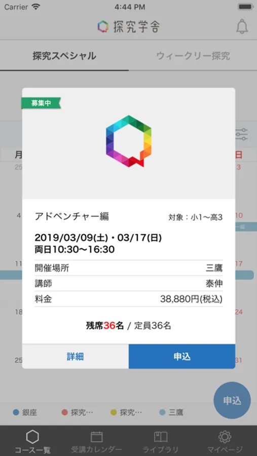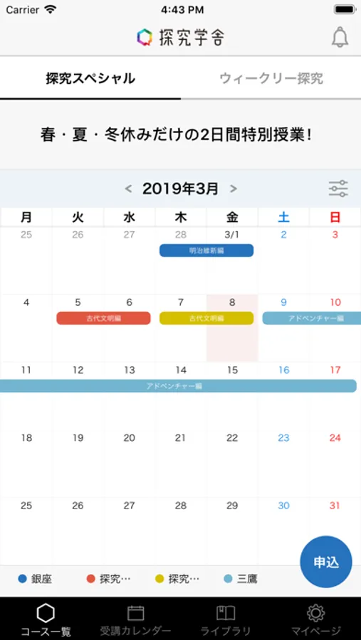 -「探究スペシャル」の開催スケジュールの確認、申込。