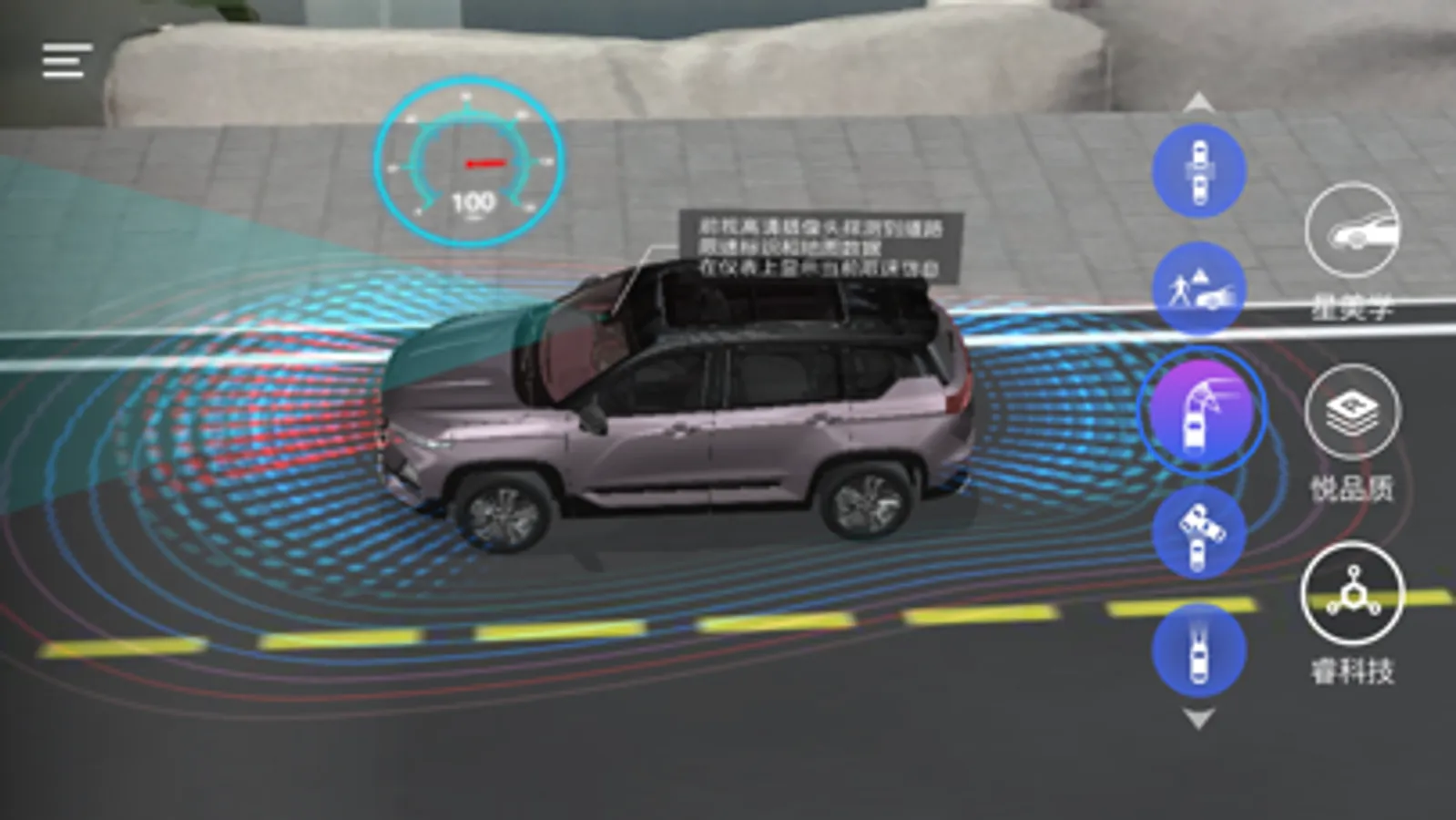 这是一款针对超强智能驾控SUV——宝骏RS-5的AR看车平台。