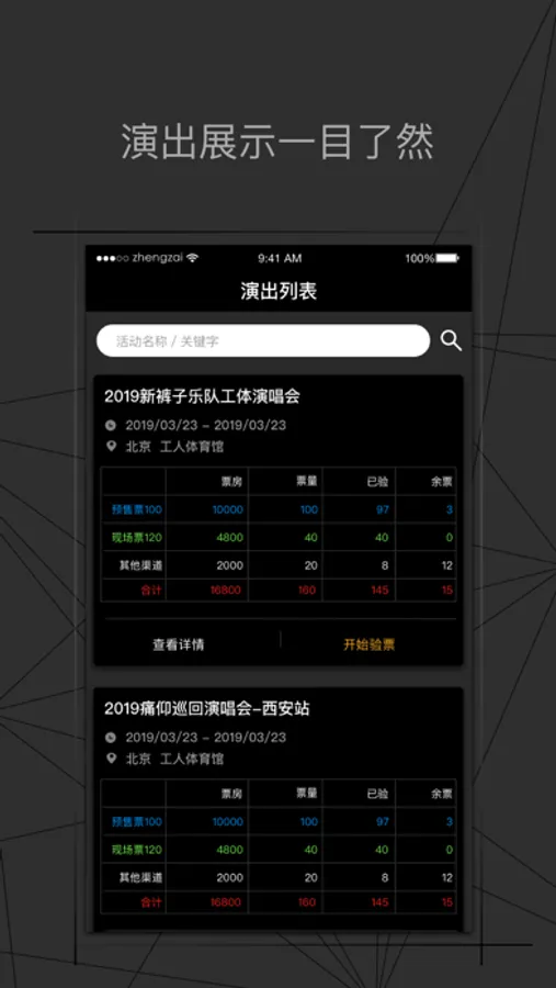 2. 系统支持演出排期、事务处理,能实时查看售票、验票情况;