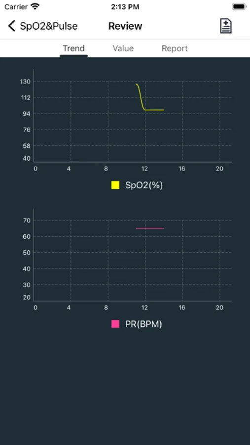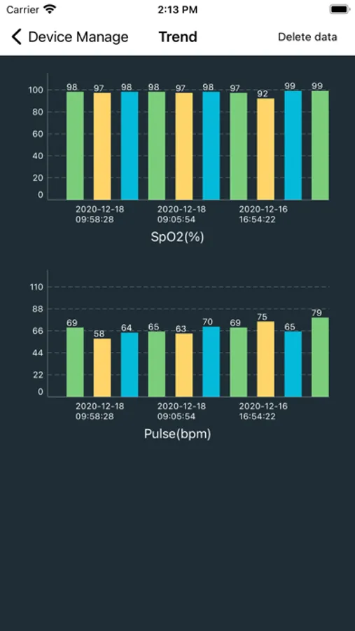 Bluetooth (BLE) is used to connect the SpO2 meter and receive the historical data of SpO2.