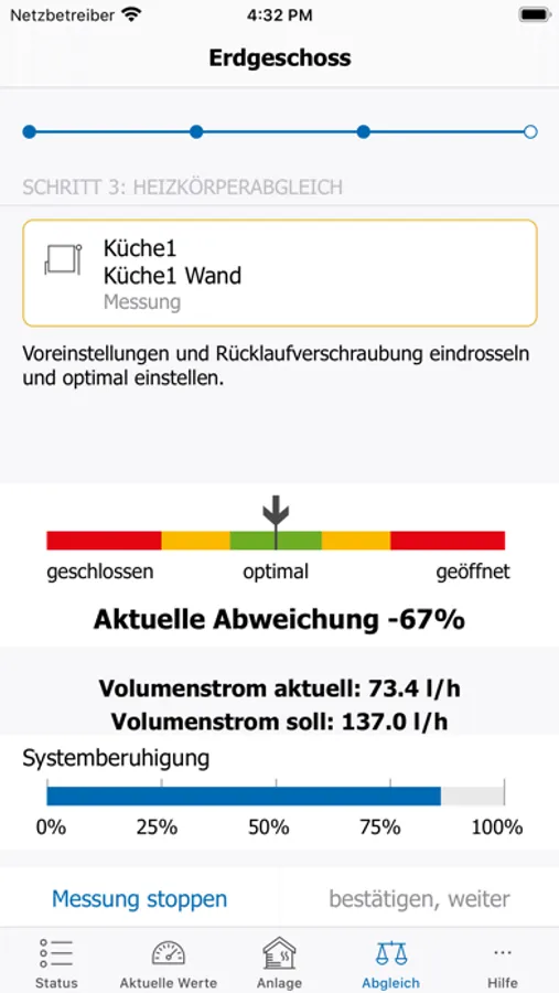 - documentation of the most important data such as flow rates, differential pressures and temperatures
