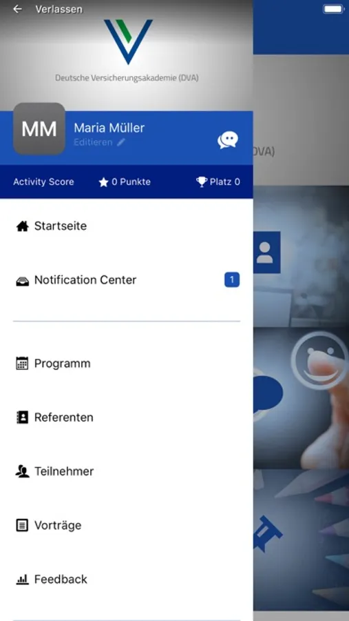 Mit dieser App der Deutschen Versicherungsakademie (DVA) können Sie sich als Teilnehmer bei DVA-Tagungen durch die Veranstaltung begleiten lassen.