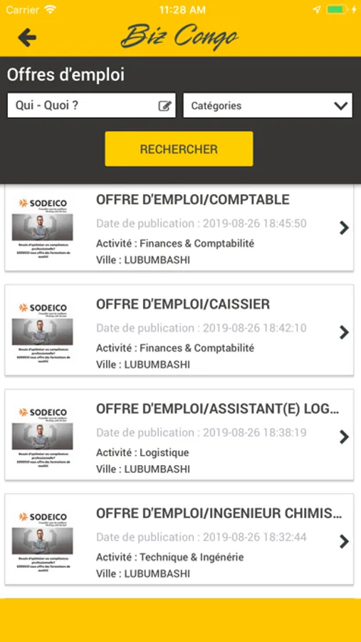Avec l’application BizCongo trouvez rapidement l’Entreprise que vous souhaitez et visualisez directement ses produits et services, sa géolocalisation, son actualité, sa boutique en ligne et bien d’autres choses.