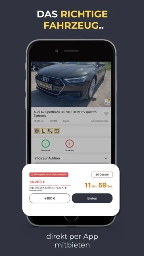 Dank unserer innovativen Lösung finden wir das richtige Fahrzeug für den richtigen Käufer und das zu günstigen Konditionen. Gebühren fallen dabei nur bei erfolgreicher Transaktion an. Eine Übersicht aller Gebühren finden Sie in unserer App.