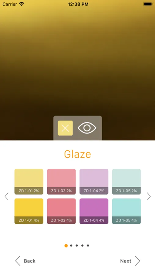 The app allows you to preview the effect of a glaze. In addition, you can use the selected colours to easily create a recipe for the composition of the required colour concentrates. You can share the picture of the coloured workpiece with customers, colleagues or dealers.