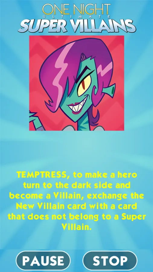 While this free companion app is not required, it provides amazing narration from Eric Summerer that guides players through the night phase of the game. Super Villains features artwork from One Night artist Gus Batts, done in the classic 90's Cartoon Network™ style.